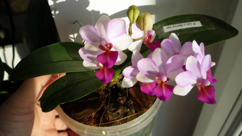 Позвольте, в качестве иллюстрации того, как могут внешние условия влиять на интенсивность окраса, я покажу Вам фотографии одного и того же растения. Это разные цветения. Зимой, без солнышка цветок бледный, поздней весной - он гораздо ярче.