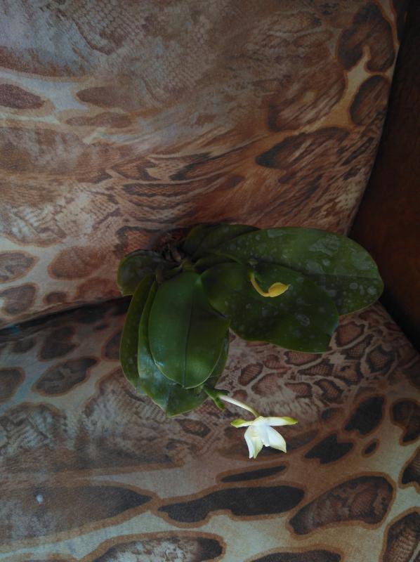 Два цветоноса, с одного цветоноса - цвело, чтобы все растение влезло в объектив - пришлось уложить на кровать...