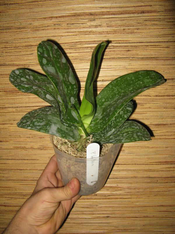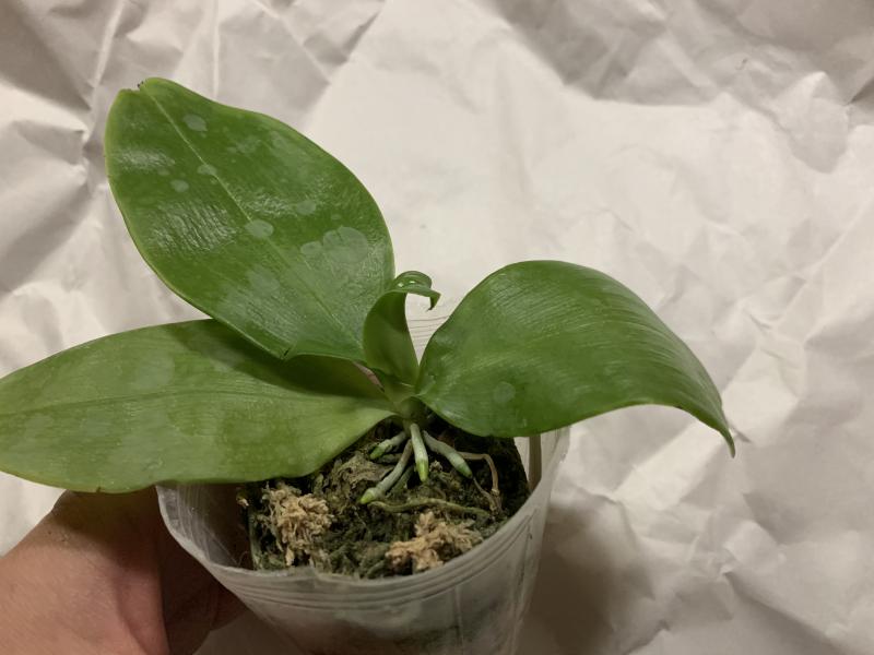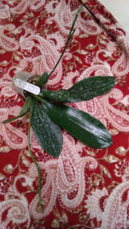 Phal. Tying Shin Fly Eagle’TS-66. Хорошенькое маленькое растение, недавно пересажено в 2,5, т.к мох наисвежайший. Корни есть, даже видны растущие кончики. Мох качественно посушен (до сухарика), листики с пониженным тургором, но очень быстро пришли в норму. Листочков 2 пары, самый большой 8 см