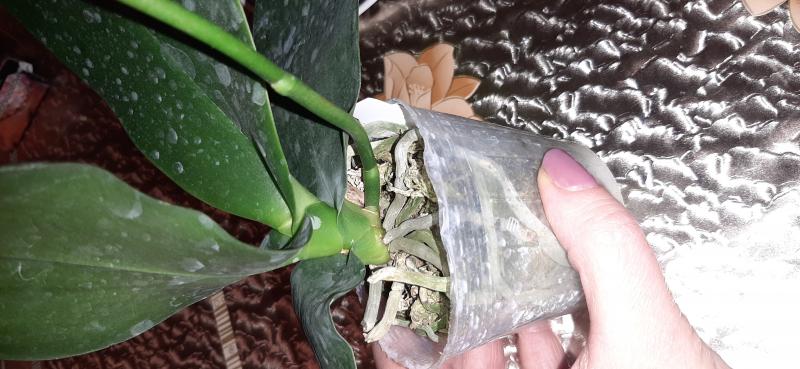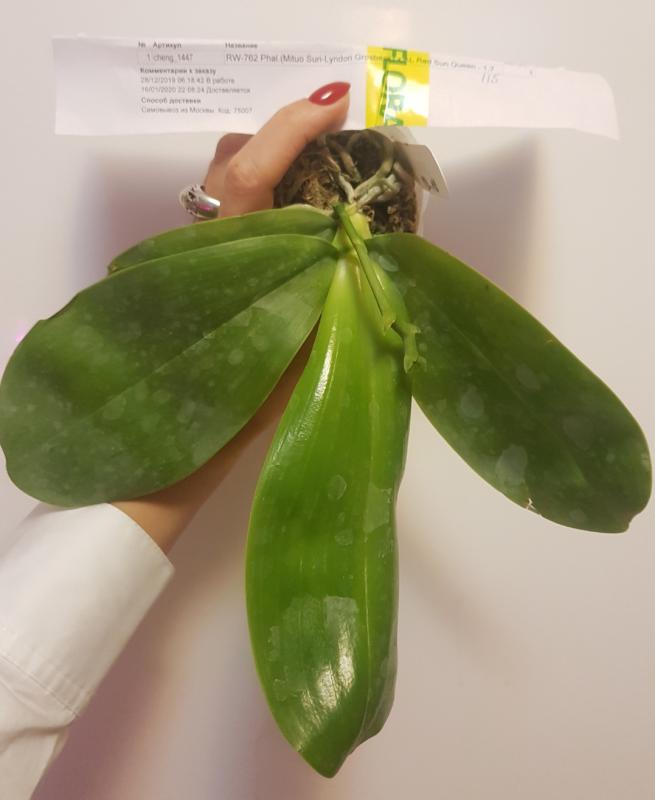 И новый растущий листик, корешки в норме, есть молодые растущие и цветоносик. Заказом довольна! Большое спасибо!