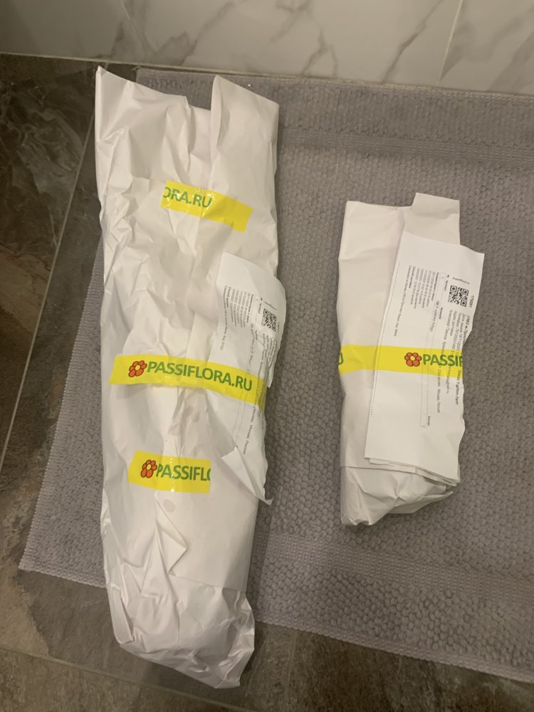 Очень здоровое и хорошо просушенное растение. На совесть, очень надежно упаковано, прекрасно перенесло дорогу. Размер 2.5, три пары блестящих упругих листьев, засохший цветонос. В полном восторге! Спасибо, Passiflora и Анна!