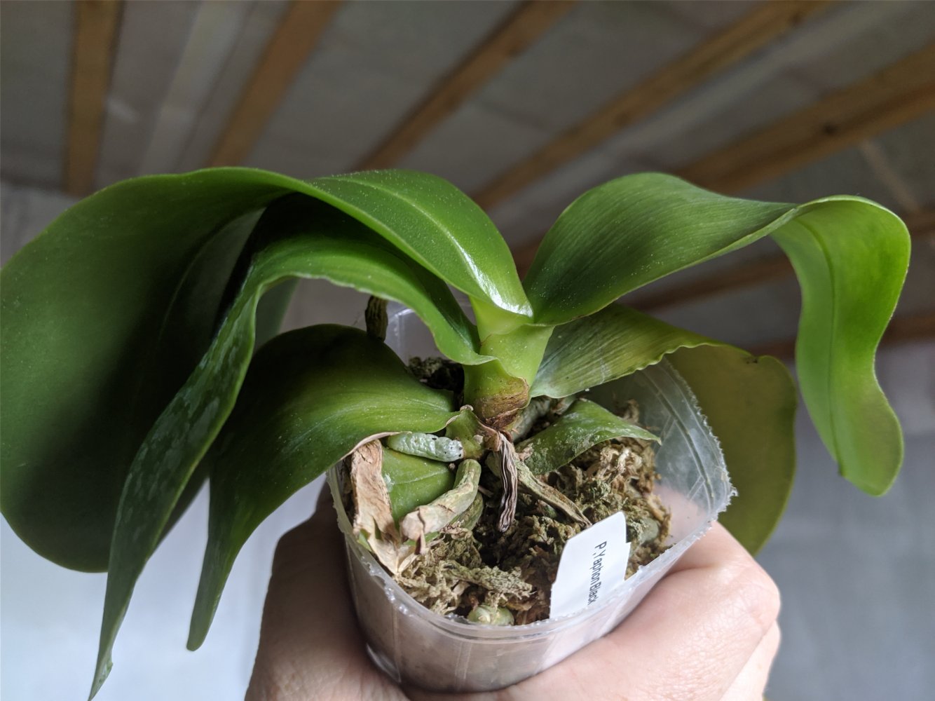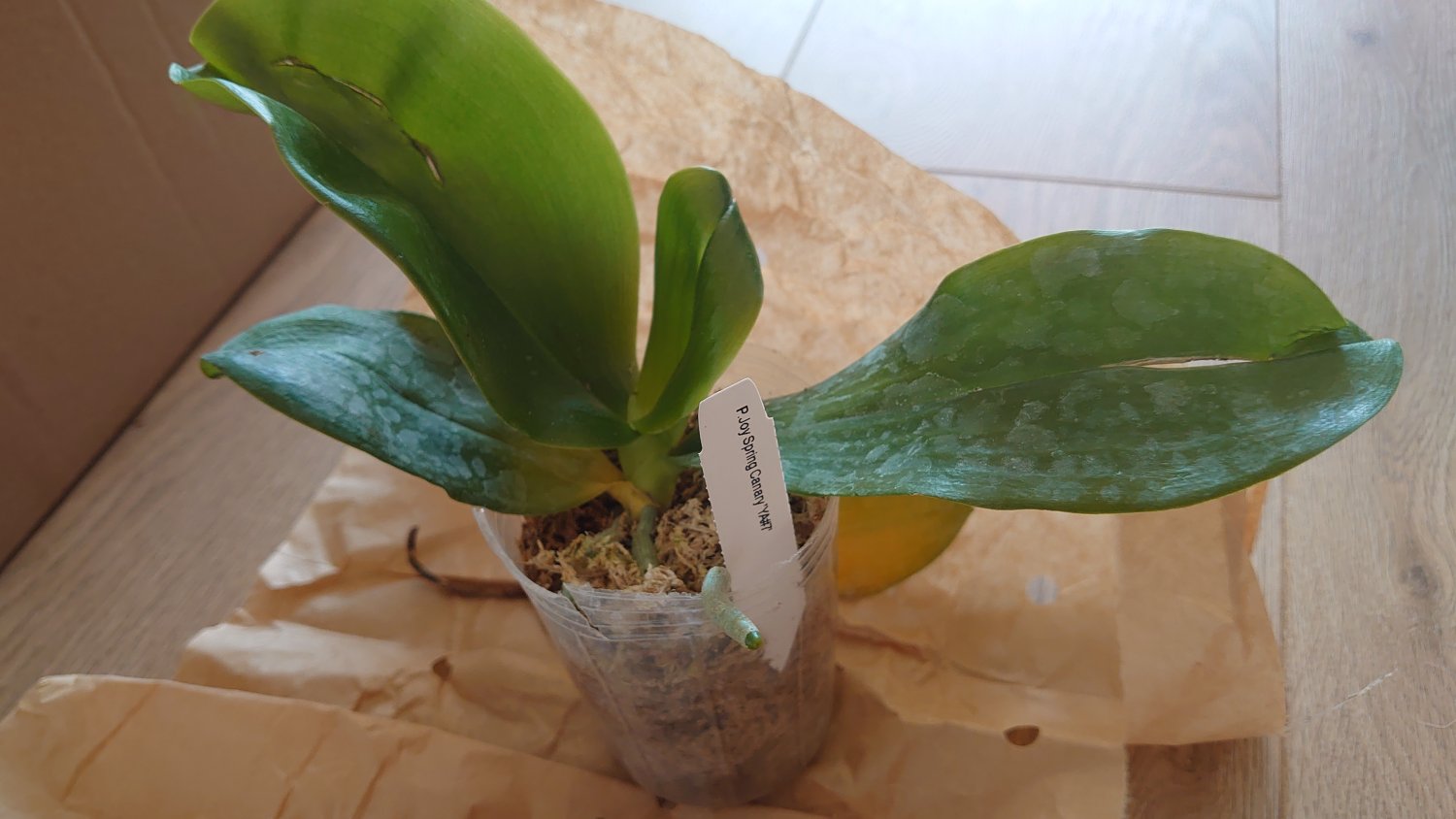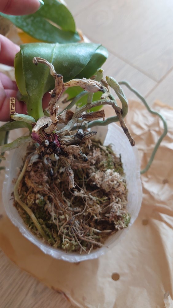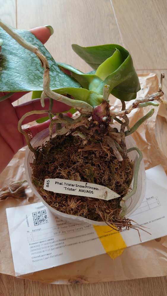 https://passiflora.ru/product_info.php/products_id/386932 Растение крепкое в размере 2,5, растет новый лист, есть остаток цветоноса, мох пересушен, на корнях высохшая плесень.