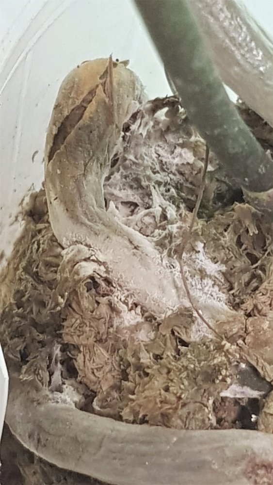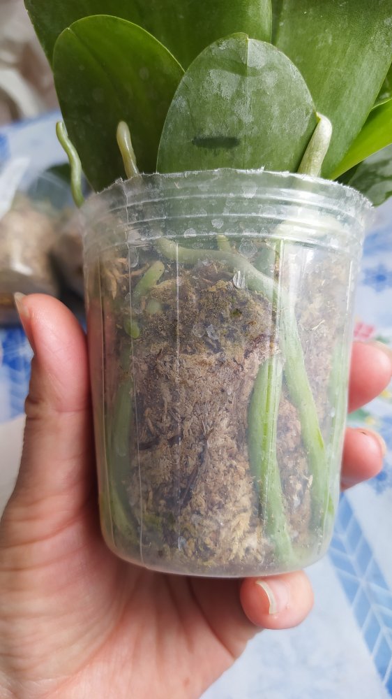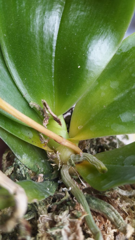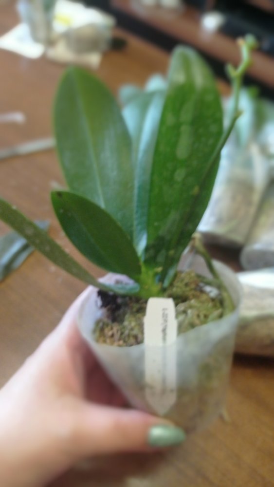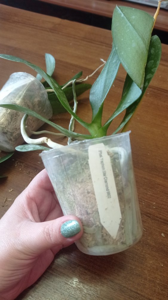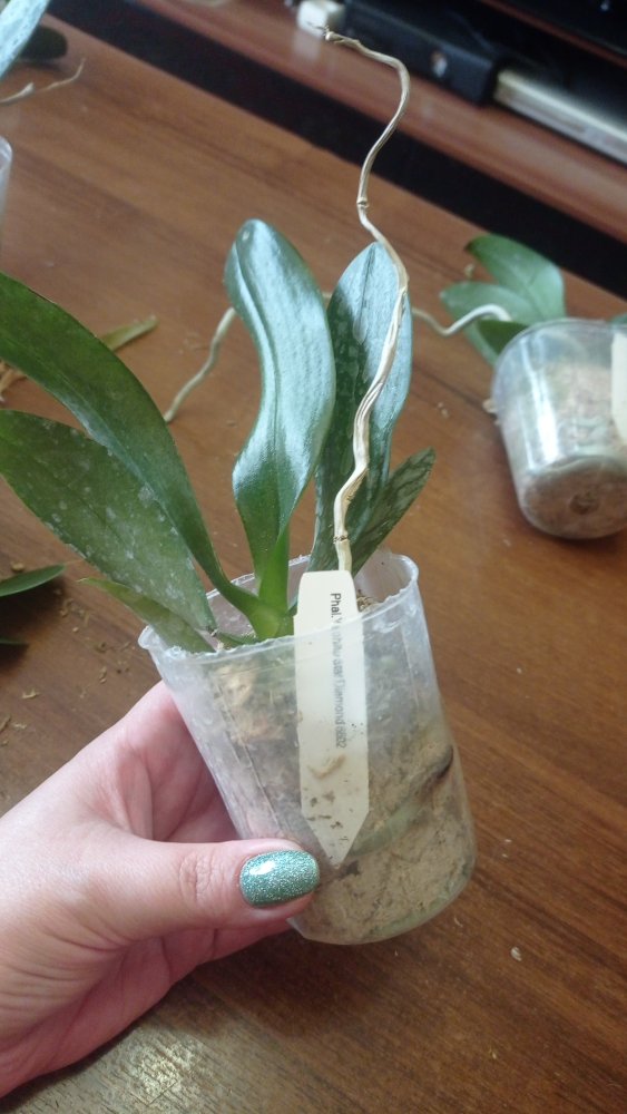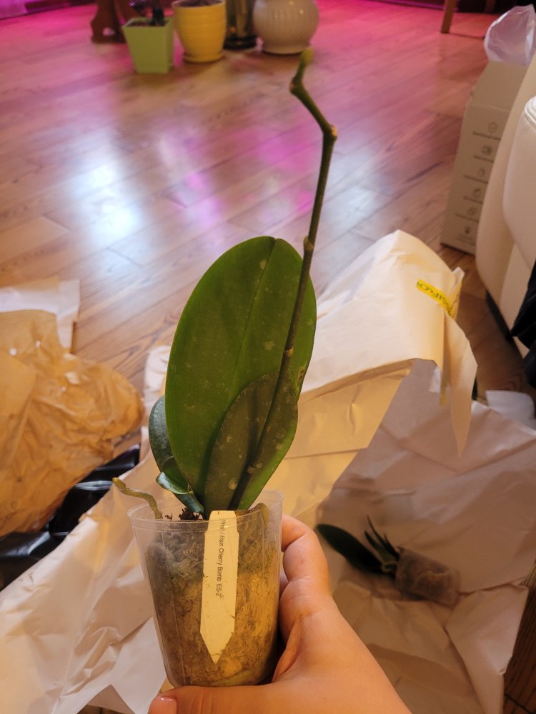Получен ещё 1 яфон. Черри бомб с подсохшим цветоносом. Хорошие 2,5. Я только пришедшие вообще не трогаю. Если мохсильно у шеи налеплен- убираю. Они достаточно быстро начинают новые корешки наращивать. Так что изначально не очень хорошие зорни из-за транспортировки не пугают. Внешне все прилично, попоила и под лампу)