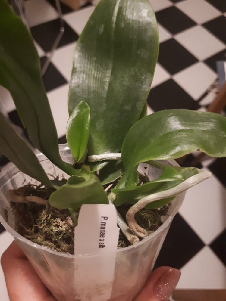 - P. mariae x sib - молодое крепкое растение, есть небольшая чернота на 1 листе, надеюсь, это просто лист подопрел при доставке