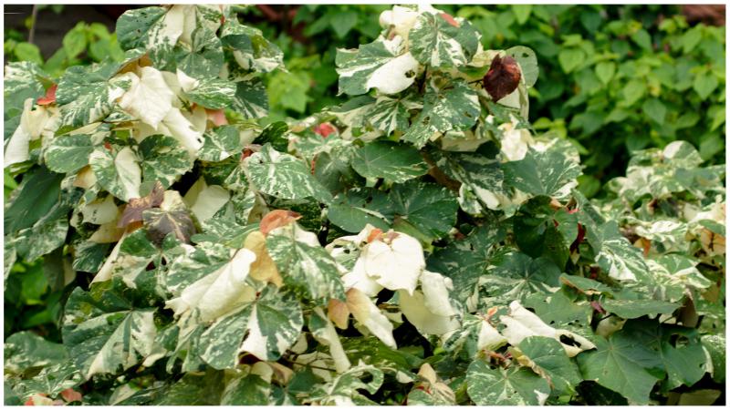 Гибискус липолистный (tiliaceus, то есть, если точнее, липовый) вариегатная форма. ЗависЬть (змеиная такая. Чёрная).