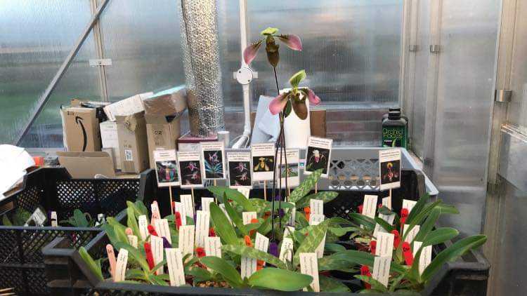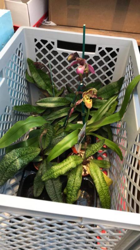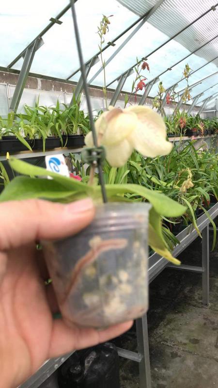 Paphiopedilum hangianum ‘ Star Point’ x concolor ‘Hsiao’