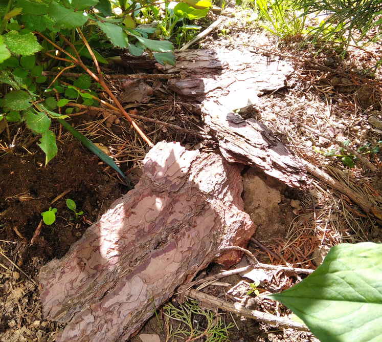Вот такая кора уже то, что надо. Воду берет хорошо но ещё не меньше 2 лет не разложится.