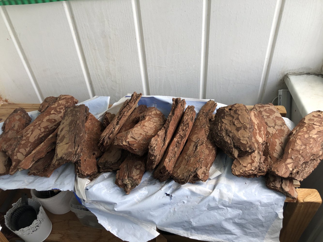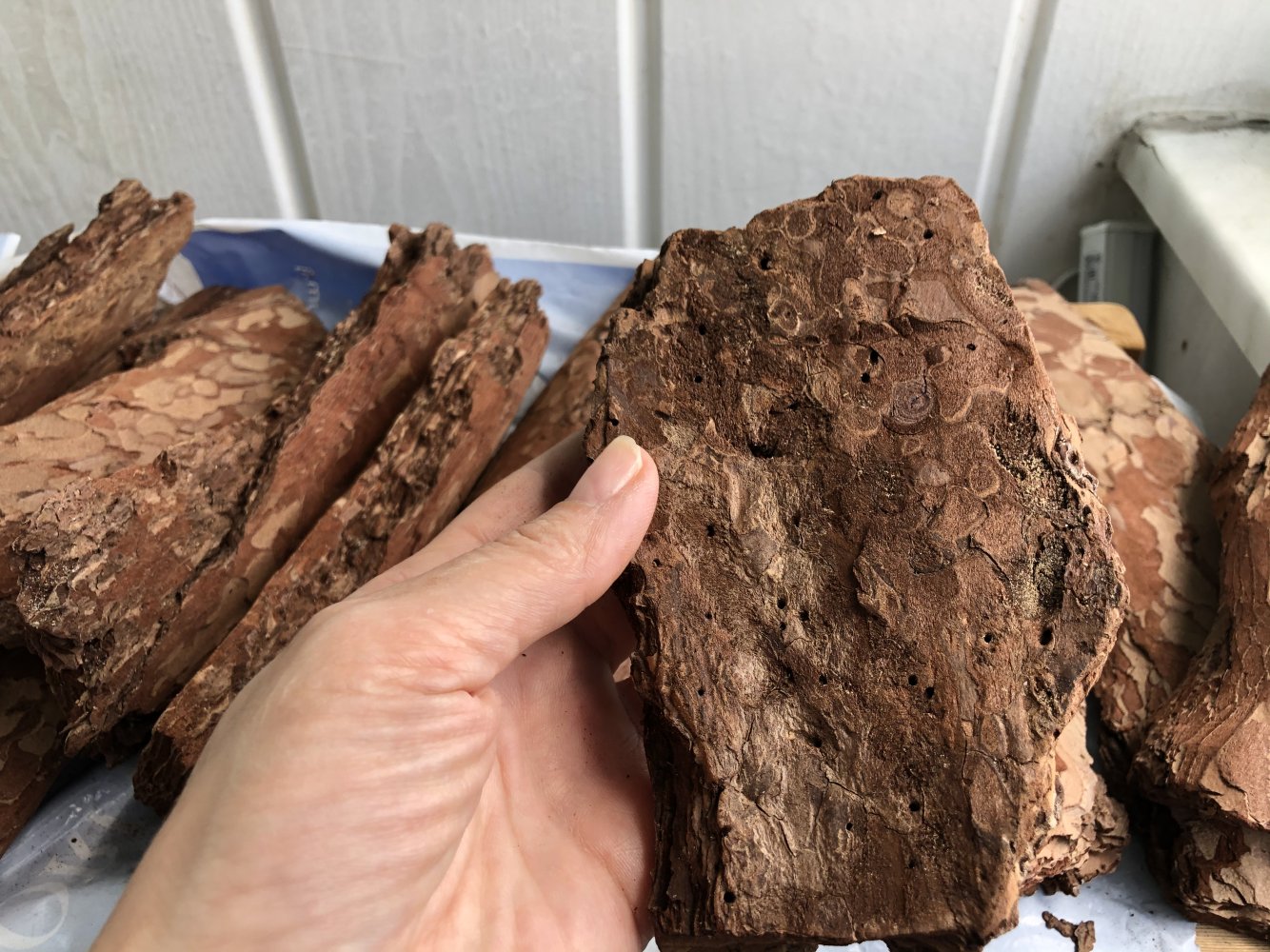 Брала с мертвых деревьев, но она на них ещё хорошо держалась. Была со смолой. Я варила. Потом это всё плесневело, кора плохо брала воду, отталкивала её, правда. Хранила в квартире, сухой.