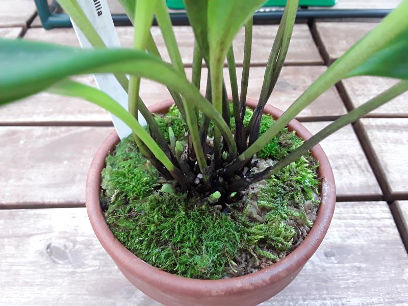 Итак: масдеваллия декумана, посажена на блок, пришла 2 июня, а получила я ее только 14... :girl_amaze: Юлия, у которой она была все это время, сжалилась над растюхой и полила, но листочки как пергаментные. Корешки зелененькие... ну и фото: