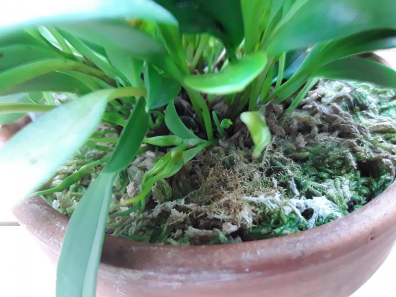 Светило, мох, который на первой Каудате, сняла на пробу еще осенью с дерева и положила ей. Он "коротковорстный" и должен все покрыть "ковриком". Он прижился. Недавно в парке на прогулке обнаружила похожий мох, который оброс бетонные бордюры, вырос прямо на голом бетоне. Я его тоже поснимала, обработала и положила к масдеваллиям. На всех не хватило, как снова там буду, еще сниму)). Сделала вывод из своих "приключений" с масдеваллиями, что самое сложное - это первые дни после получения. Любое неправильное действие приводит к катастрофическим последствиям. Поэтому очень важна правильная стратегия действий в первые дни, это и будет иметь решающее значение. Поэтому и пишу, что кто еще не понял, что им нужно, и ждет к получению масдеваллии - не тяните. Получили - не понятно, что с ними делать и как действовать - покажите фото с вопросами.