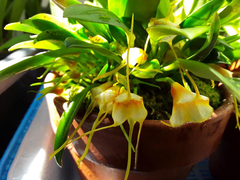Продолжу рассказ о полученных в начале апреля этого года масдеваллиях из Эквадора. Растут с момента получения на улице. Все отлично адаптировались, несмотря на то, что все видовые и капризные. Всех уже пересадила на ПМЖ. Совсем холодники растут в глиняных горшках, чтобы максимально сохранять холодное содержание. Проблемные с корнями или умеренного содеражния - в сетчатых горшках, некоторые в прозрачных. Больше всего мне понравились для выращивания этой группы орхидей именно керамические, в дальнейшем буду выращивать в них. Из минусов - зимой на холодном окне они постоянно покрываются белым плесневым налетом. Убирается легко - раз в несколько дней просто снаружи горшок промывается водой из под крана и вытирается. Масдеваллии-холодники отлично себя в них чувствуют в любом субстрате. Теперь немного фото.