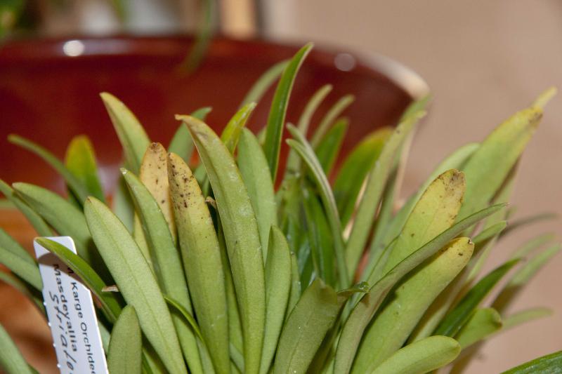 Аккуратно пинцетом удалил весь мох, стараясь не повредить корни, горшочек отставил этот же, в освободившееся пространство положил три кусочка коры. От пятен не стал обрабатывать. Какое-то время листья сбрасывала, пятна продолжали множиться. Поливаю только проливом каждые два дня. Проснулись со всех сторон корешки, но растут очень медленно, проснулись со всех сторон росты, но растут очень медленно. Листьями перестала кидаться, пятна прекратили появляться. Листья чуть сморщены всегда, но торчком, упругие. Температура содержания +20...+22, окно юго-западное, солнце если и попадает, то после 16:00 на пару часов.
