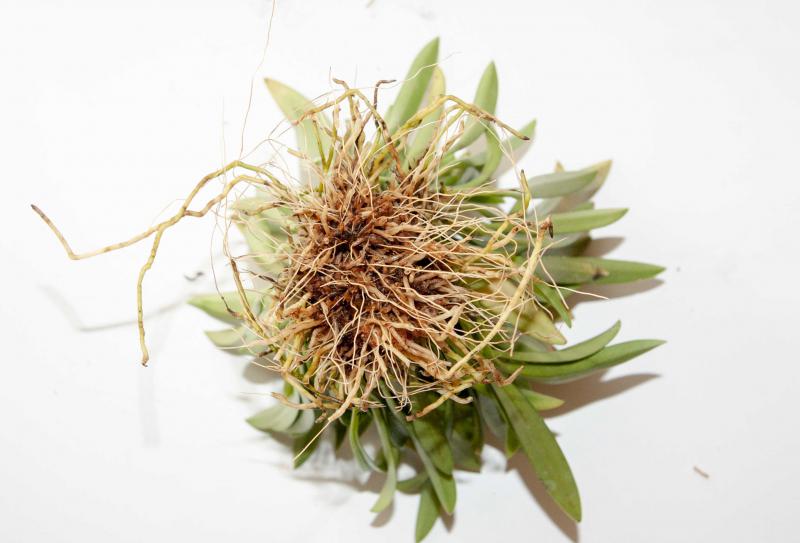 2. Полив только проливом, когда корни высохнут (субстрата как такового нет, корни просыхают в день полива) и два-три дня постоят сухими.