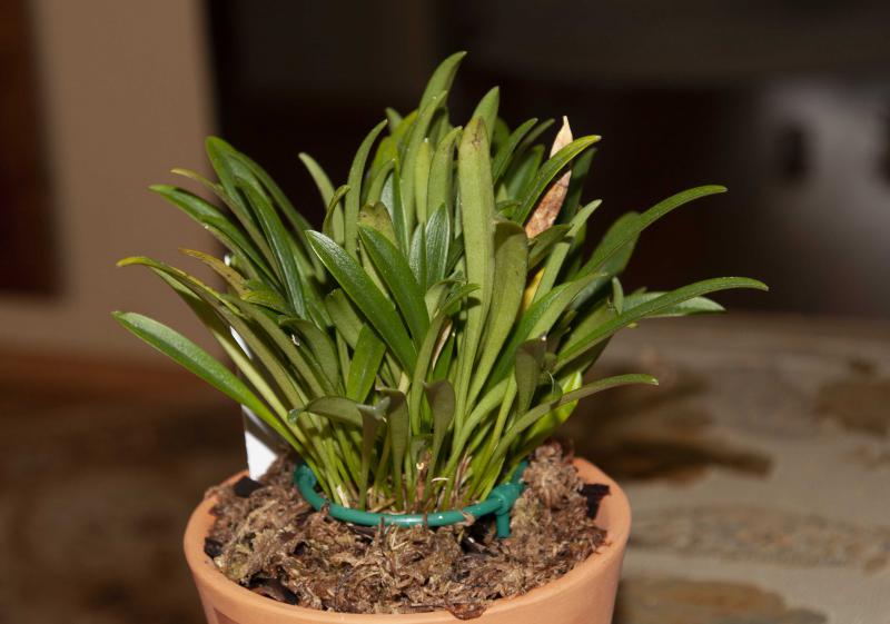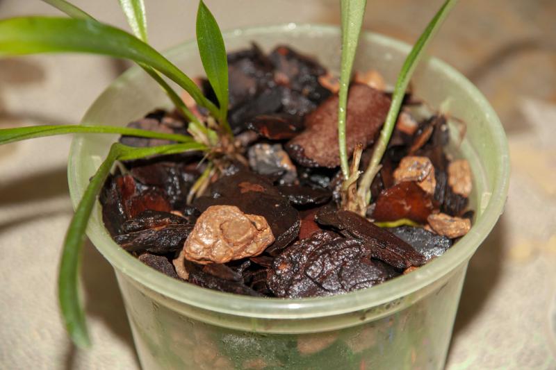 Прошел месяц. Как писала выше, при пересадке от моей масдеваллии отделились 2 маленьких "кусочка", их посадила отдельно. Вчера аккуратненько отгребла кору. Корешочки живые! Это уже радует. И мне кажется, что ростики немного подросли. Стоит в тепличке, раз в 1-2 дня опрыскиваю поверхность. Проветриваю, как вспомню.