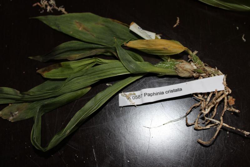 Paphinia herrerae пришло в стаканчике, корни завёрнуты в мох, есть парочка живых. Три маленькие бульбочки, в прошлый раз растение было более взрослое.