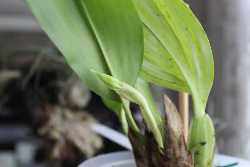 Peristeria pendula листва сочная, новый рост, корни есть