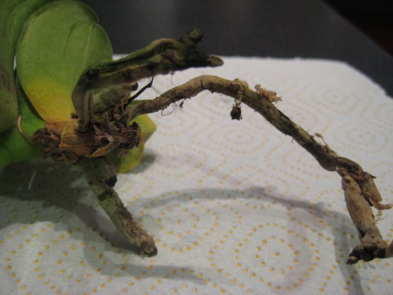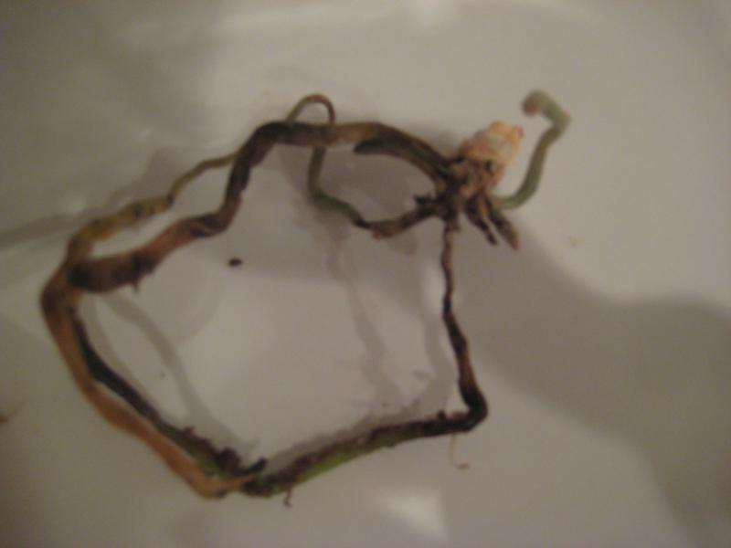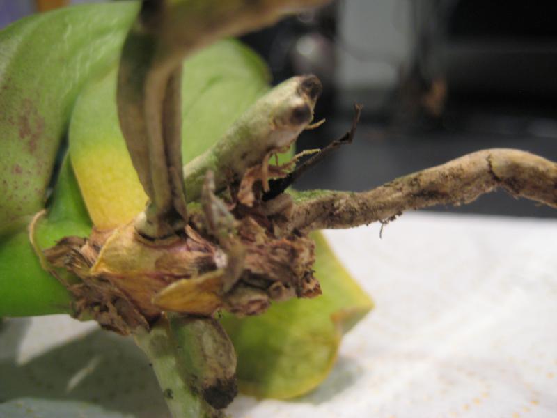 2. Теперь фаленопсис. Делаете все тоже самое с горшком. С шеи аккуратно снимаете засохшие остатки листьев и ждете. Не поливаем, только опрыскиваем не чаще 1 раза в день очень малым к-вом воды.