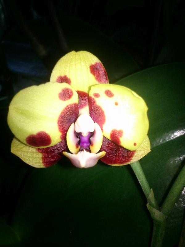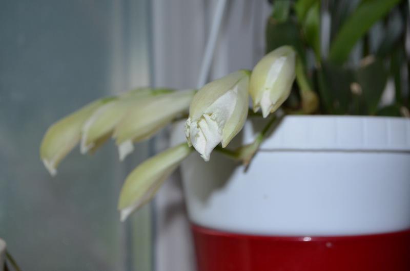 Он растёт с макушки нового тубера , как у дендрофала.Сфотографировать слдожно длинна цветоноса 20-25см.
