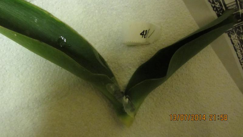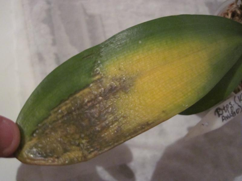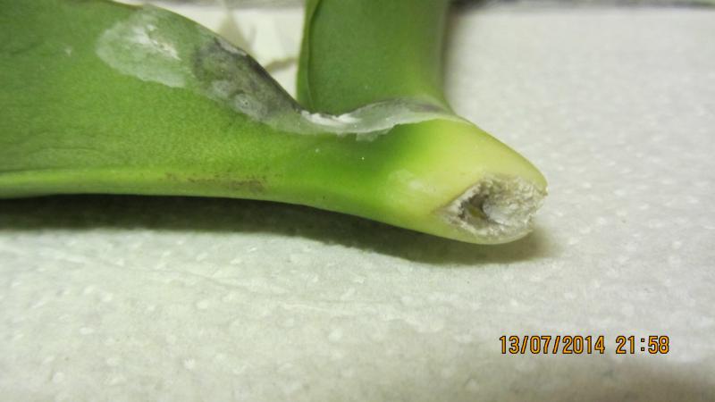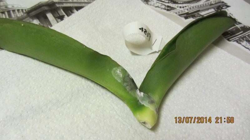 3. Отрезаем поврежденные листья до живой ткани, прижигаем срез кашицей фундазола