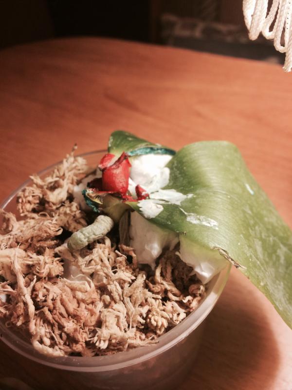 Dragon tree eagle x Princess Kailuani материнское растение без точки роста и детка, пришел с бактериалкой на центральном листе детки. Детку пришлось резать дважды, но в итоге бактериалку удалось остановить.