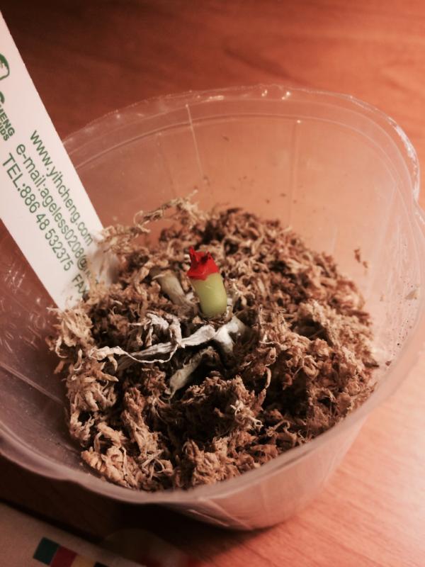У нас примерно так и получается как Вы написали: ежедневное аккуратное опрыскивание либо протирание листьев водой, 1 раз в неделю со стимулятором, посажен очень рыхленько и воздушненько в распушенный мох.
