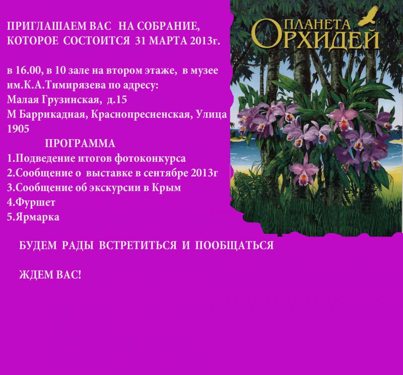 Журнал "Планета орхидей" организует очередное собрание орхолюбителей.