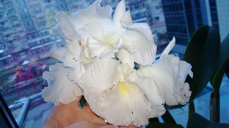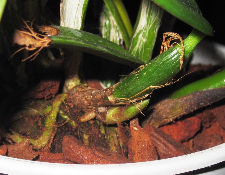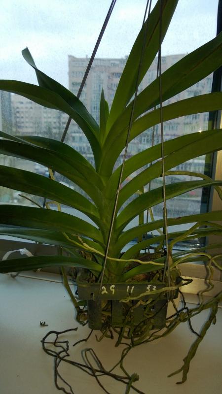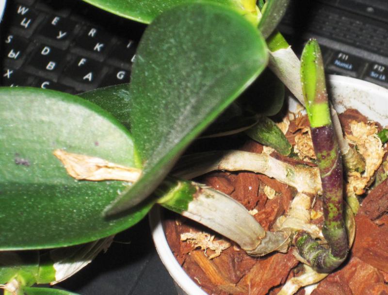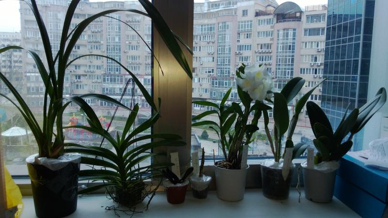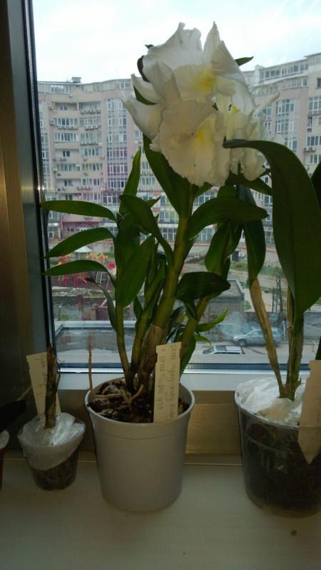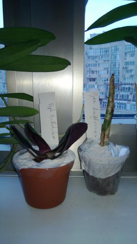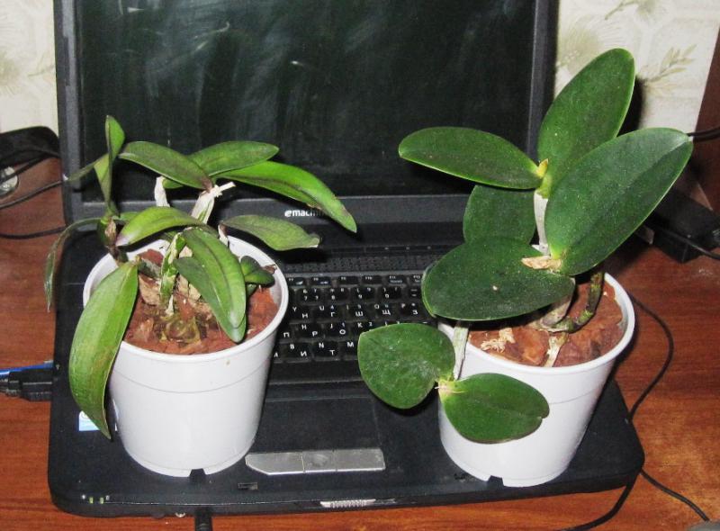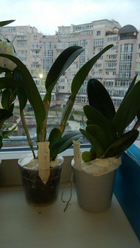 Слева Slc Bright Circle, справа Cattleya aclandiae Hybrid Special Selection 2. Едва ли не впервые я не считаю нужным вмешиваться в посадку поставщика, с моей точки зрения, она идеальна. Между прочим, я долго мучался с тем. как надо понимать "Hybrid Special Selection". Долго сравнивал разные фоты, и решил, что речь идёт именно о спец слекции каттлеи Экланд. листья, слегка округлые, соответствуют. Остаётся подозрительной низкая цена на эту лошадь: последняя бульба 12, лист 9см, но это в норме для здорового specimen'а данного вида. Кроме посадки, в хорошее настроение приводит свежий и отлично доехавший новый рост (ликую) и следы цветения на прошлогодней бульбе (хороший промис)