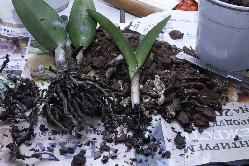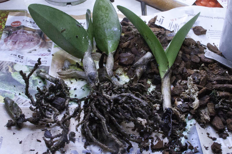 Phalaenopsis Fantasy Music, отличный слоник, 3 или даже 4 растения в горшке, мамка и ее дети :) Цветочки осыпались когда достала, влажно было внутри, в остальном состояние отличное, ни гнили, ни плесени
