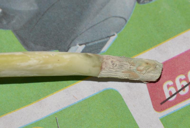 Милка13, Пахнуть гнилью могут остатки сопревших и как следствие этого подгнивающих листьев. Я считаю, что у Маркизы получалась уникальная вещь! От такого обрубочка отрастить корни! У меня лично такого ни разу не получилось. В общем, мое мнение, которое Вы можете учесть, а можете и пропустить мимо, ведь это Ваша ванда... Опрыскиваете корни раствором гамаира и алирина, чуть подсыхают, чтобы не капало с них, переворачиваете вниз головой, опрыскиваете ботву. Феном пользоваться в данный момент не стоит, раствор должен впитаться и подействовать. Весь ствол до чистого места замазываете кашицей из этой же смеси. Через день замачиваете корни в чистой воде минут на 10, не больше. Ботвы осталось мало, хватит за глаза и за уши. На следующий день повторяете опрыскивание только корней и только ботвы, аккуратно, чтобы лишняя влага на ствол не попала. И смотрите. Если все растение поражено, нижние листья пожелтеют... При больном стволе запах своеобразный, это даже не гилью пахнет, а не знаю с чем сравнить. И правильно Ирина Баринова написала, гнилой ствол мягкий. Если обрезать по красным линиям, нет запасов ствола. Если примите решение обрезать, то для начала хотя бы см на 7-10 ниже. И смотрите - чистый или нет, и не появится ли через минут 18-15 фиолетовые кружочки. И тогда будете потихоньку резать выше, инструменты обязательно перед каждой манипуляцией надо дезинфициоровать. Постараюсь вечером сфоткать одну из таиландских ванд, там тоже длинный голый ствол, желто-коричневый, без корней и без листьев. И ничего, не гниет, растит листья потихоньку, цветет себе...