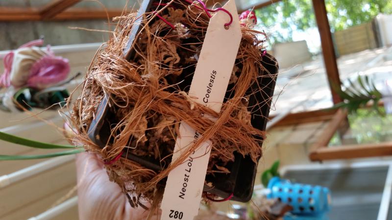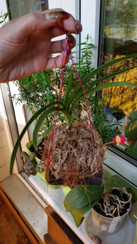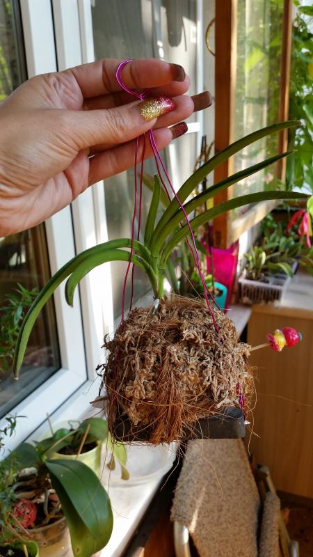и посадить на кочку, соорудила из корзинки от ванды пьедестал, покрыла корзинку мхом в 1 мшинку толщиной (городить 3 см мха под попу не стала, все тоненько), сверху водрузила неостилис и покрыла еще одним слоем мха. Оть фотоотчет: