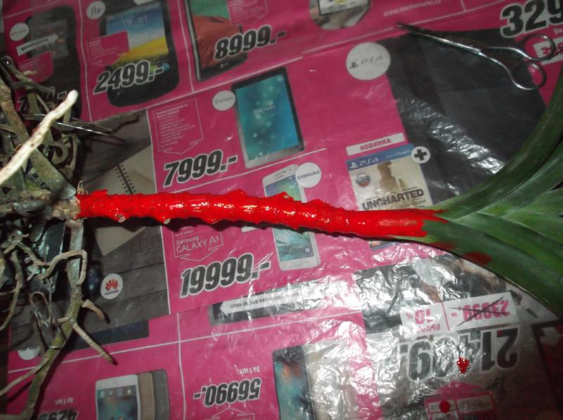 Обрезала до минимума все старые цветоносы. Самый верхний аж выломался чуток с корнем.