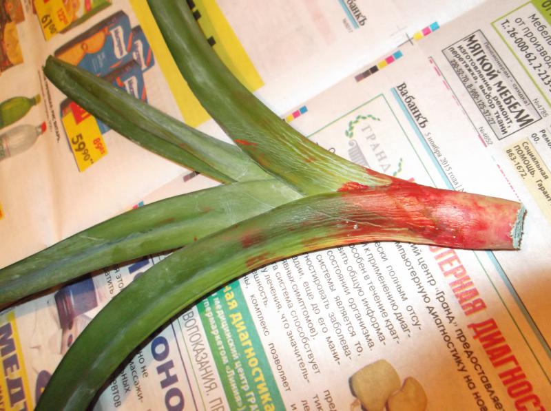 Не удержалась, срезала аккуратно все желтеющие листья вместе с покрывными чешуйками.