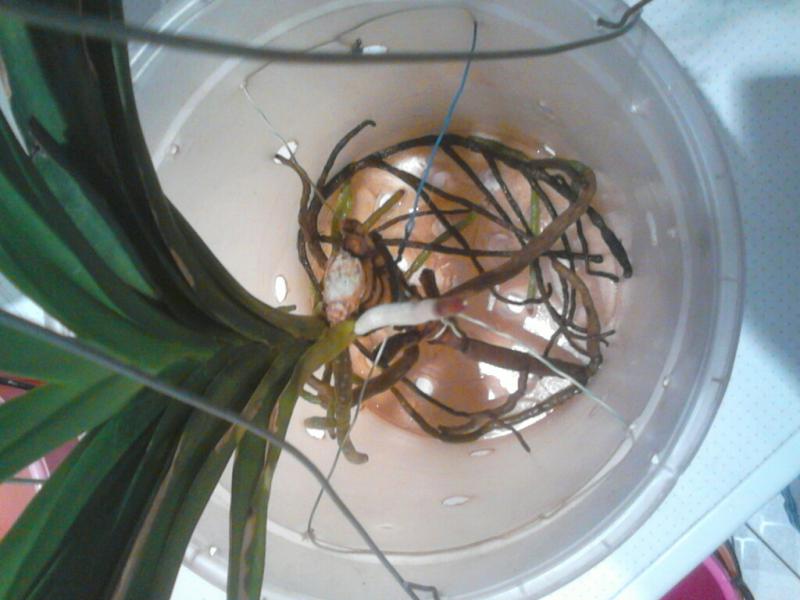 Что подскажу - либо субстрат, целиком все корни, либо ОКС. В сто первый китайский раз объясняю: ВСЕ корни должны просыхать между поливами. Как правило, самые здоровые корни, которые активно запасают влагу с помощью веламена и достаточно быстро просыхают - это верхние корни. Если Вы помещаете корни в горшок и сверху насыпаете "чуть крупной коры", то как раз верхние корни у Вашей ванды будут пересыхать, а нижние значительное время будут оставаться мокрыми, что приведет к загниванию веламена на них и гибели этих корней.может быть лучше в дырявый горшок и чуть крупной коры подсыпать, что подскажете?