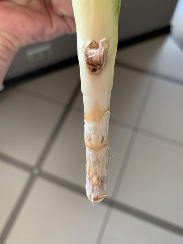 Я бы отрезала еще выше, где начинается светло-желтый цвет ствола. Рез бы сделала прокалеенным ножом, потом обмакнуть его в ордан , модно запечатать парафином. Вам Ганна ( Чижик) более квалифицированный совет даст, как сообщение увидит. Но я бы так сделала