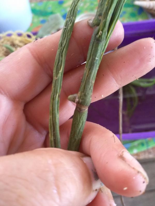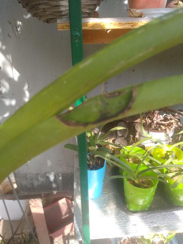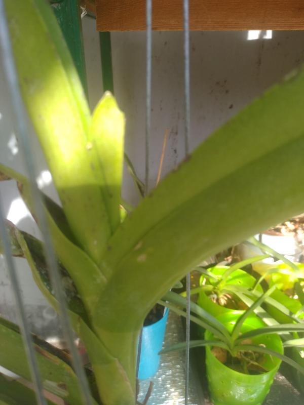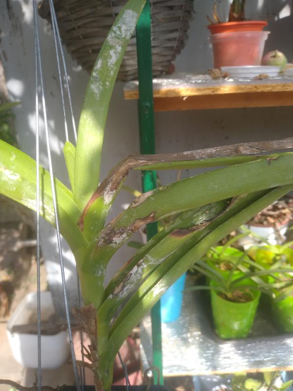 Я тоже приобрела страдальца Vasco. Sri SIAM. На утро после получения самовывозом тоже был обработан(подсохшее "молочко" видно на фото). IMG_20190616_085812[1].jpg Два листа были "потеряны" из-за гнили. На других двух листьях росли коричневые пятна. Вырезала их аккурасто до зеленой живой ткани маникюрными ножницами и края обработала сухой смесью1:1 фундазола и древесного угля. Вот результат - гниение остановилось. IMG_20190616_085802[1].jpg. У растения было 2 прикорневые детки, тоже пораженные, с гниющими листьями. Как только убрала этих деток, у корня появилась почка новой детки, но через сутки засохла сама. Больше никаких лечебных мер не применяю. Режим, как и у теретной ванды. Замачиваю корни в теплой воде с витаминками и Янтарином ежедневно и подвес в тень (под яблоню). Появился намек на новый кореньIMG_20190616_085834[1].jpg. Еще для наблюдения нанесла тонким маркером линию на молодом листе. На фото видно, что листочек тоже растет - линия сдвигается.IMG_20190616_085849[1].jpg