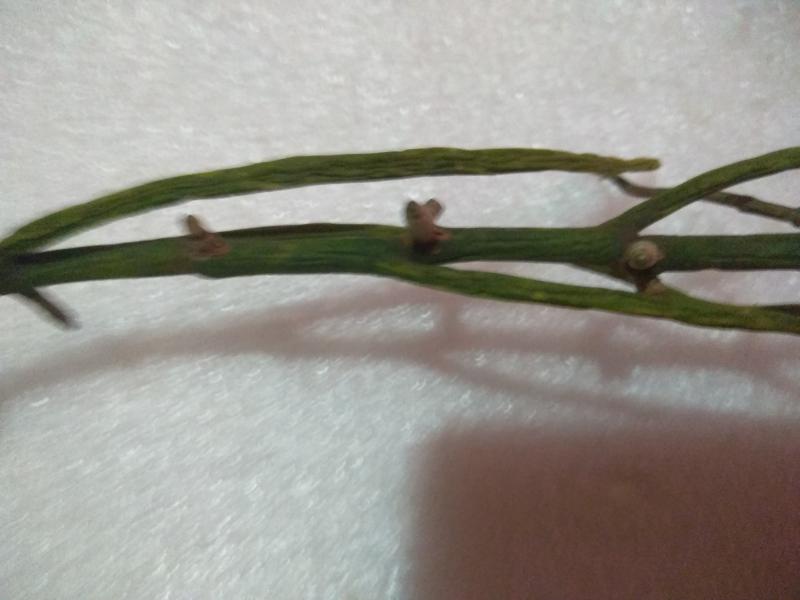 Пятен мокнущих нет, все чешуйки сухие, была надежда что листья были потеряны из-за просушки, пока ехали из Азии и болезни как таковой нет - может быть такое?