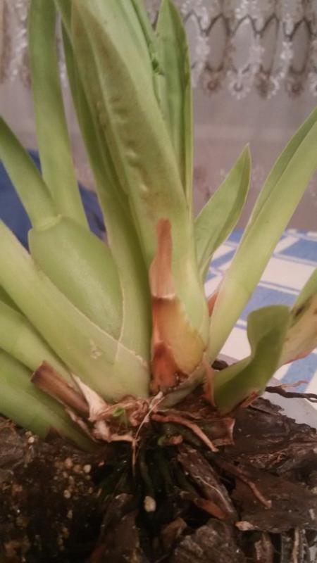 Корни - а что, мне так очень даже нравятся! Живые, и достаточное количество! бульбы налитые, немножко влажность повысить вокруг и покой организовать прямо сейчас, и новый рост не смотря на гармошистость, вполне может процвести к весне.