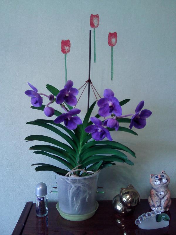 mamo, я думаю мне просто попалась очень покладистая ванда. Стоит на самом светлом месте, поливаю каждый день (если прохладно денек пропускаю) вот и все.