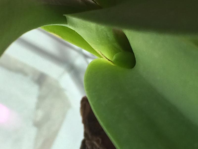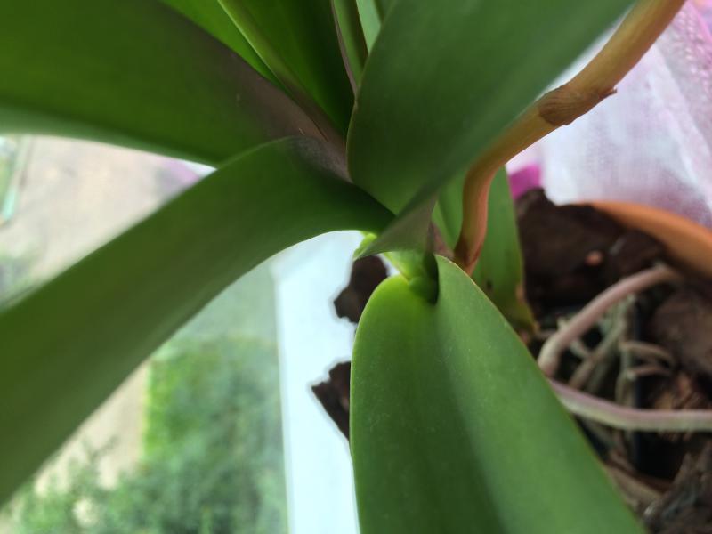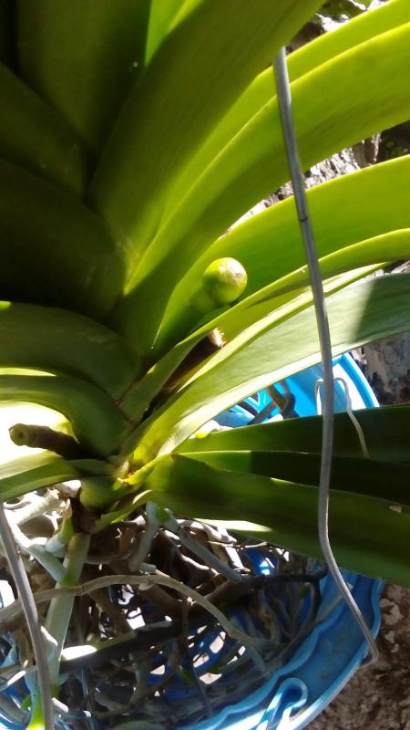 Какая-то у меня интересная ванда. Только что закончила цвести (не долго цвела, первый цветочек открылся 18.06.15), сегодня отрезала полностью отсохший цветонос и увидела в следующем пазухе новый цветонос.