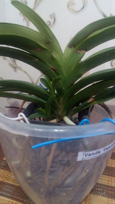 Желтая Ванда у меня из Тюмени, пришла немного помятая, получила осенью. Тургор верхних листьев ещё не восстановился. Растит 2 детки и усиленно корни.