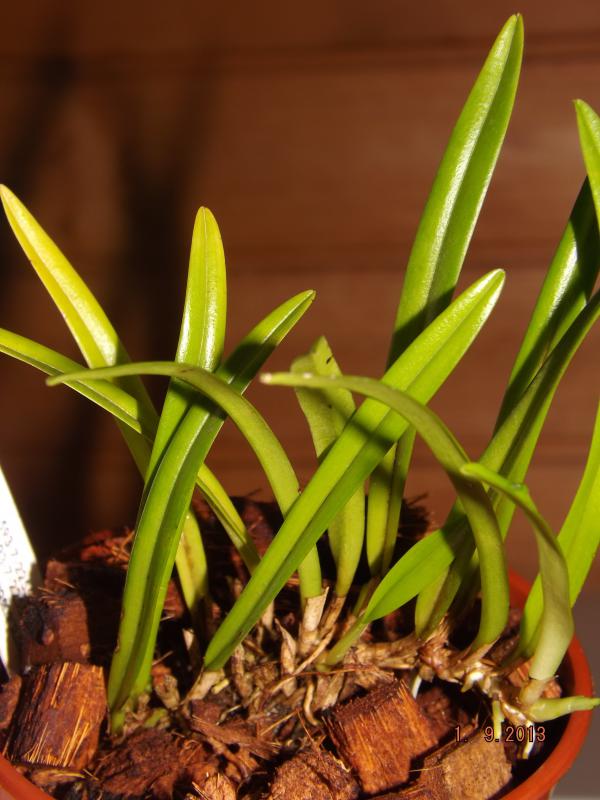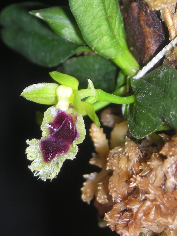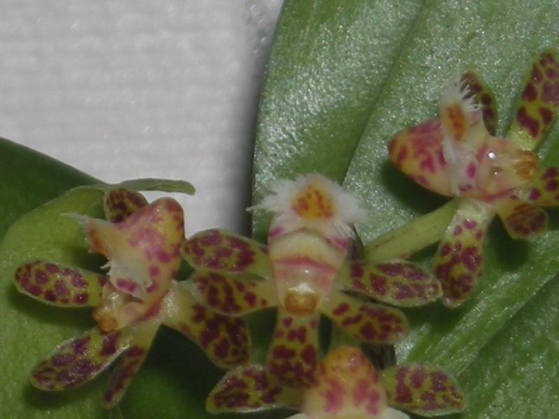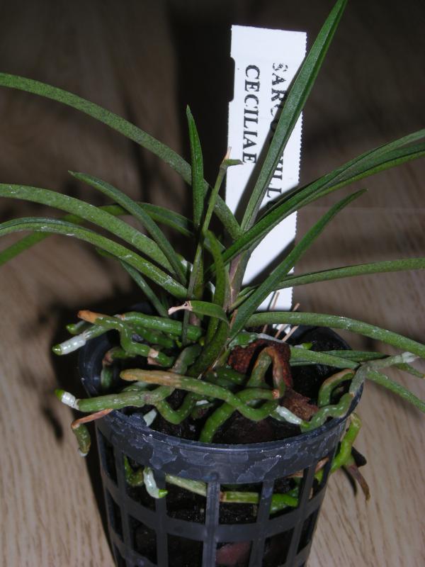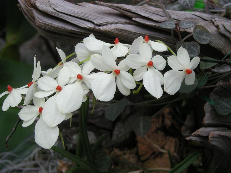 Sarcochilus ceciliae. Высота растения 8 см. Не цветёт, вредина, хотя растет хорошо и корни жирные пускает. Хотелось бы дождаться такого цветения (фото с инета).