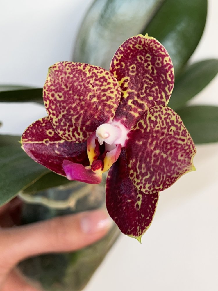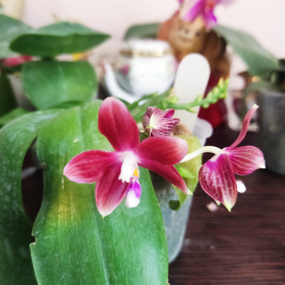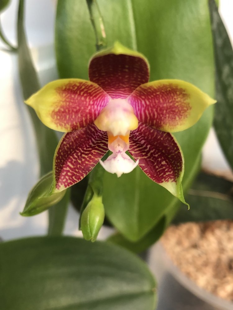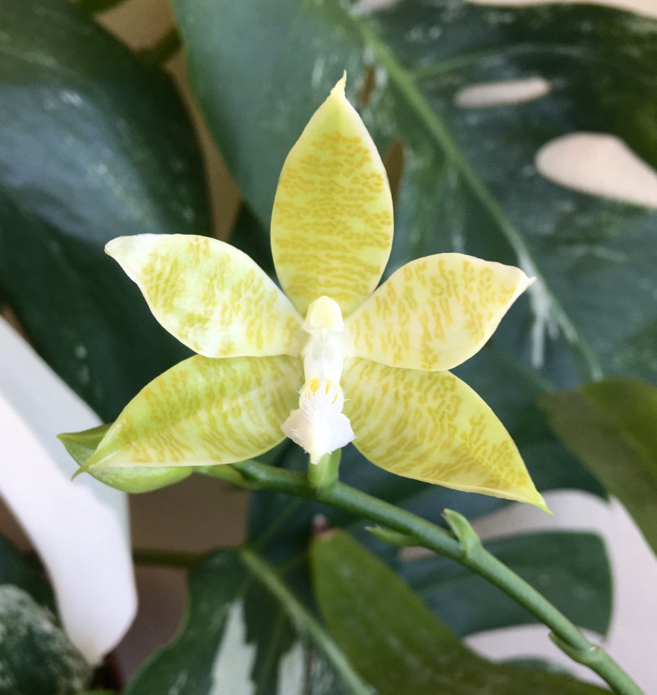 Из зимнего поступления:p. (Mituo Sun x Lyndon Coral Grosbeak)Yaphon. Первое цветение. Восковой, не ароматит. Цветонос очень высокий. Всего один цветок. 😆