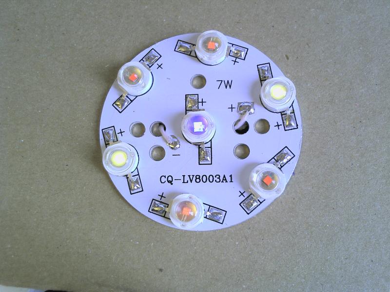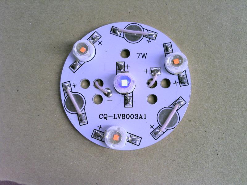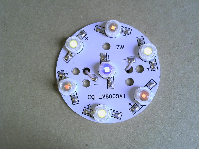 Светодиоды распаяны на монтажных алюминиевых платах CQ-LV8003A - диаметр 50mm., толщина 1,4mm.