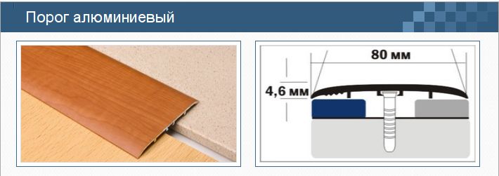 Профиль, алюминиевый порог, 80 мм. Анодированный, матовое серебро.