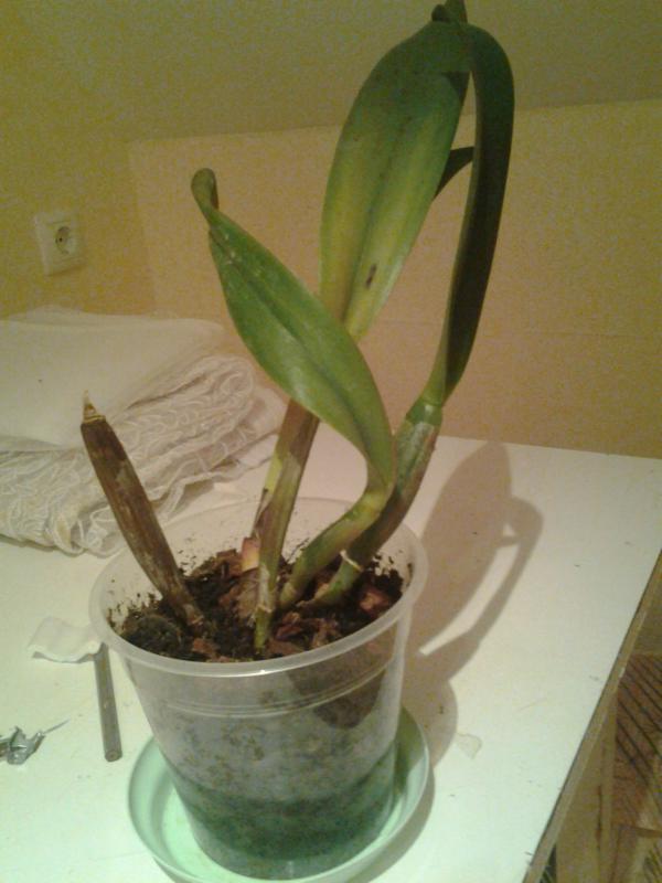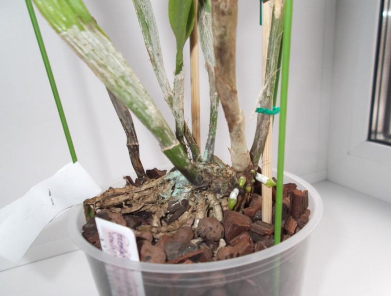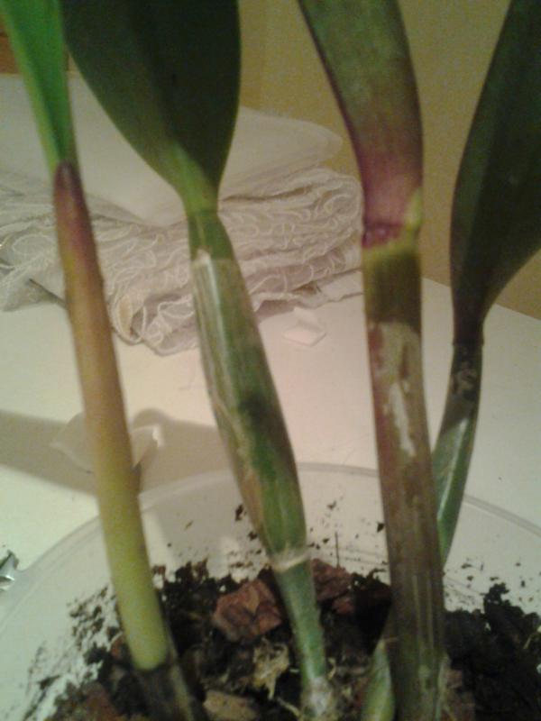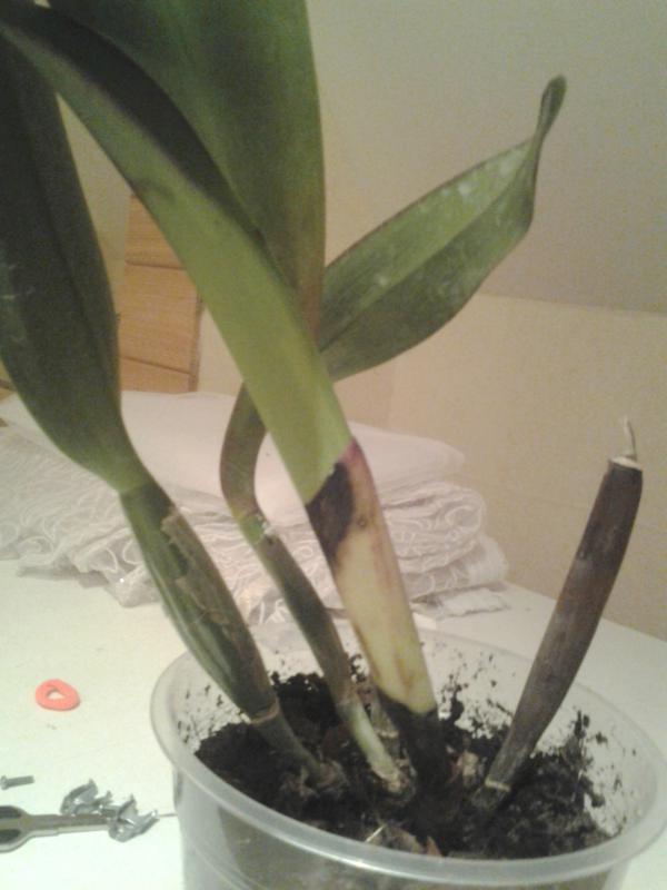 Сдается мне, что это - черная гниль, причем уже в затяжной стадии. Поражает каттлеи и их родственников.