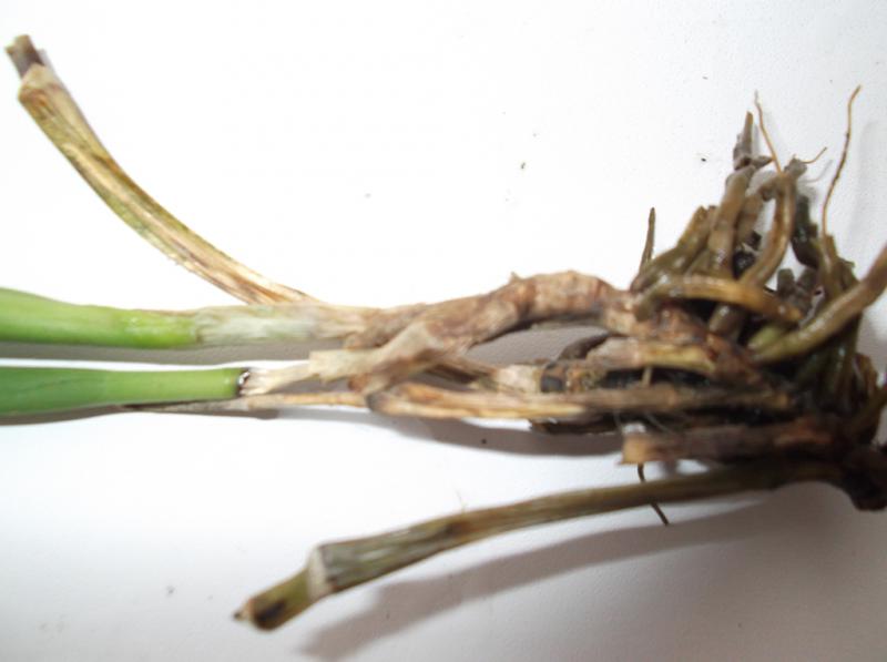 Тест - разрезать ризому у конца последней старой бульбы. Скорее всего картинка будет характерной - четкая зона, по которой грибок идет внутри.