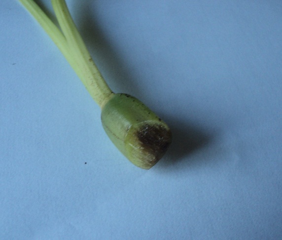 Затем аналогичные пятна возникли на предыдущей бульбе, и ее тоже отрезала. Осталось всего две, последние и самые старые. Ризома во всех случаях была наичистейшей! Сегодня смотрю - нехорошее потемнение на еще одной. Собираюсь вытряхнуть из горшка и замочить в фундазоле (есть еще превикур)