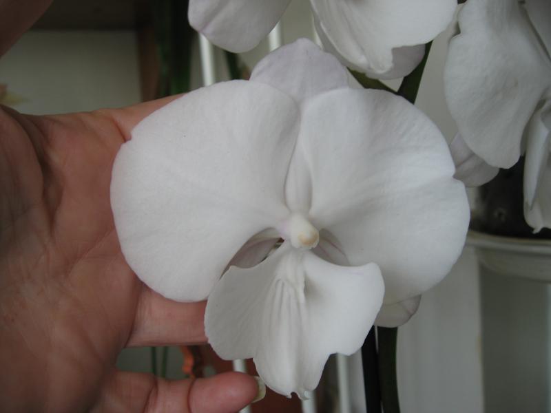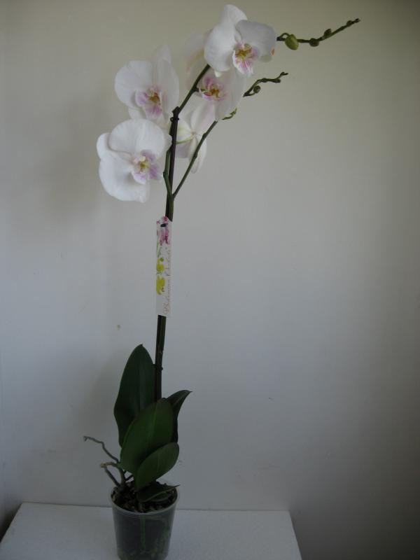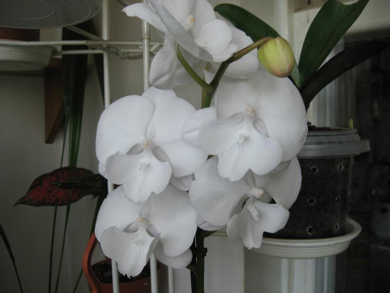 Попался в миксе, может были и еще, я поздно приехала за орхидеями. И что мне в нем нравится особенно при высоком цветоносе, крупных цветках, маленькая и компактная розетка листьев.