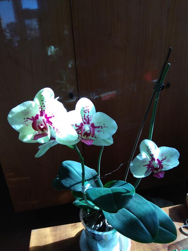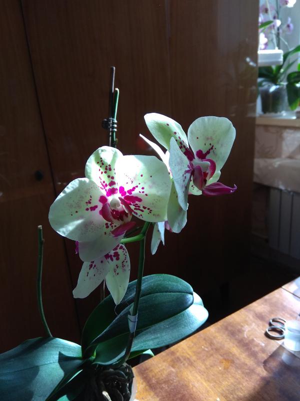 Манхеттен, самая первая моя орхидея и самая любимая, куплена 7 лет назад, как оказалось позже в плохом состоянии, короче выжила. Больше шести листьев на ней никогда не было. 3 года назад пересажена в закрытую систему. Цветунья старательная. И всегда когда зацветает зимним цветением, обязательно успеет к моему дню рождения!) Что вдруг произошло в этом году - она ВДРУГ начала пахнуть! Этого точно никогда небыло, У меня тут появилось много орхидей, с некоторыми старушками пришлось расстаться, её я точно бы никому не отдала. И вот такой подарок - нежный приятный, слабый аромат, напоминающий аромат шиллерианы.