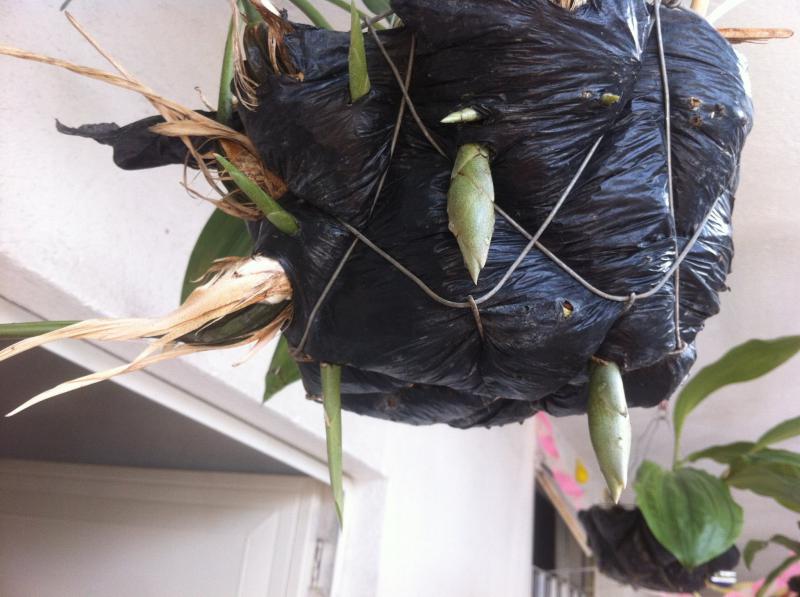 Elvira_s, скажите пожалуйста ,а вас станги есть?и как вы советуете этот рост в кокосовую корзину поместить,или вырезать окошко в кокосе или выламывать,поднять ее она не сможет эта бульба уже внутри сформирована.